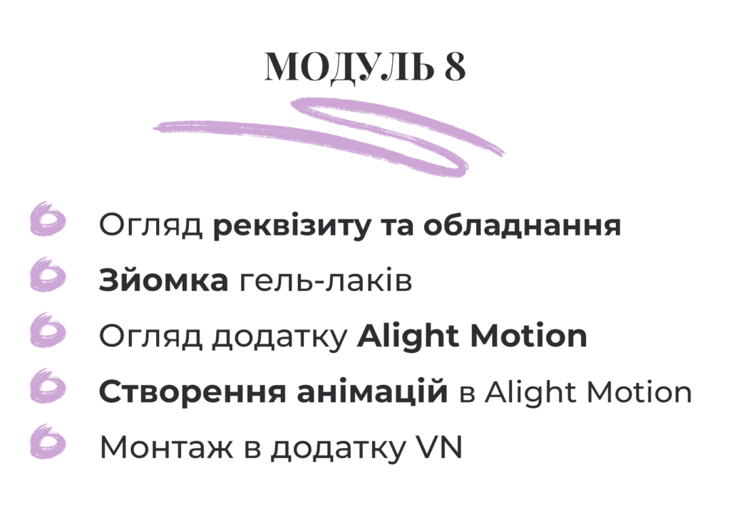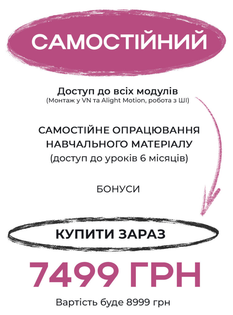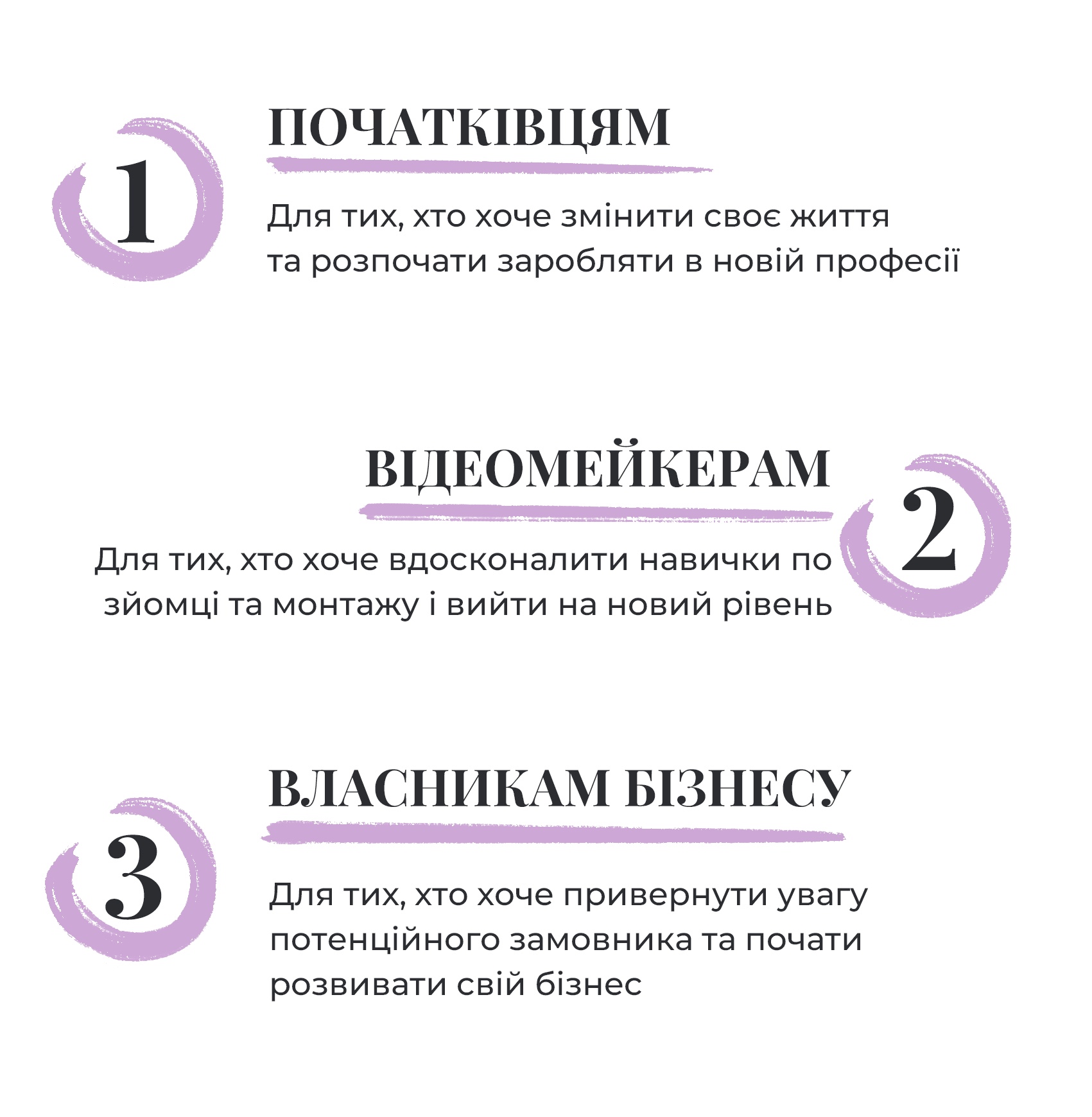 Отримаєш інформацію про детальну зйомку та монтаж КРЕАТИВНИХ практикумів з різним рівнем монтажу